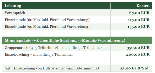 Wir formulieren gemeinsam mit den Teilnehmenden individuelle Nah- und Fernziele und planen den Weg, der sie ihrem Ziel näherbringen soll. Dabei unterliegen wir der Pflicht zur Verschwiegenheit und den ethischen Grundsätzen des Umgangs mit dem Pferd.