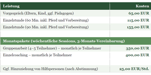 Wir formulieren gemeinsam mit den Teilnehmenden und ihren Eltern individuelle Nah- und Fernziele und planen den Weg, der sie ihrem Ziel näherbringen soll. Dabei unterliegen wir der Pflicht zur Verschwiegenheit, den Statuten zum Kinderschutz und den ethischen Grundsätzen des Umgangs mit dem Pferd.